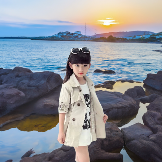 Girls Trench Coats Long Sleeve Solid Cotton - Windbreaker Outerwear