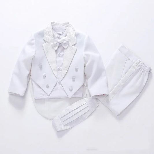 Boy's Formal white/black baby Tuxedo Suit for weddings prom - 5pcs
