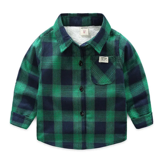 Winter Baby Plaid Shirts Kids Long Sleeve Cotton Thick Velvet Infant Casual Shirts