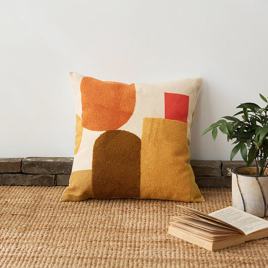 Cushion Cover 45x45cm Cotton Thread Embroidery Home Decorative Throw Abstract Color Block Pillow Cover Art Decor