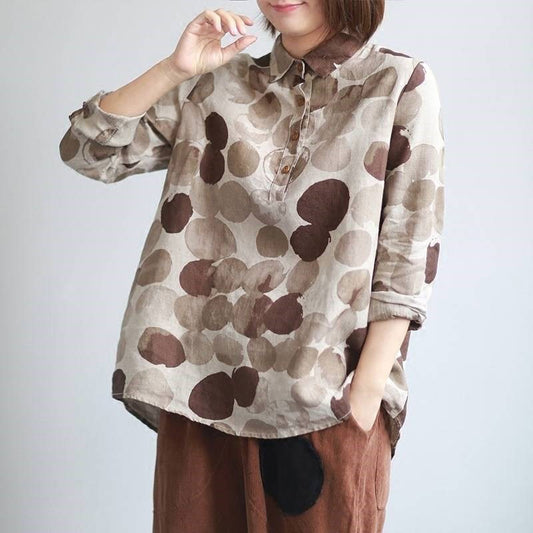 Spring Women Shirts Long Sleeve Cotton Linen Button Casual Shirts Vintage Polka Dot Print Vintage Blouses Tops P11