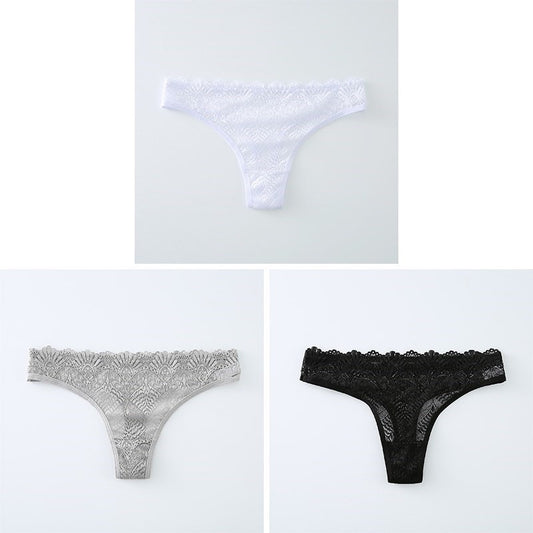 3PCS Ladies Sexy Lingerie Underwear Set High-Quality Lace Embroidery Panties Low-waist Breathable Underpants G String
