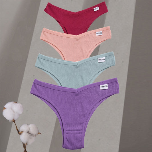 4Pcs/Set Women Cotton Brazilian Panties M-XL Low-Rise Solid Color Underwear Ladies Comfortable Underpants Girls Panty Intimates